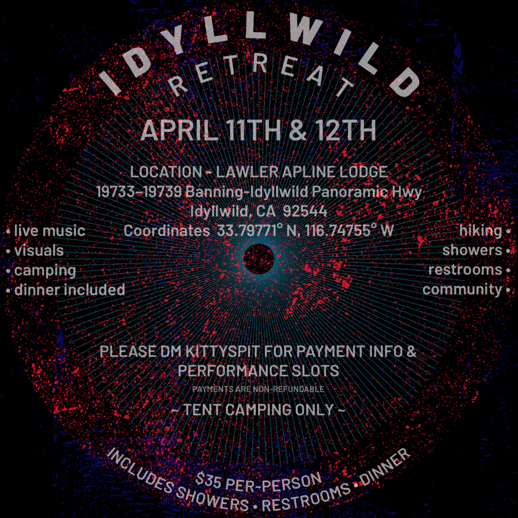 The Idyllwild Retreat & Campout is a community-focused gathering set in the tranquil forests of Idyllwild, California. Centered around live music and shared experience, the event brings together artists and attendees for a weekend of creativity and connection. Two group dinners are included, fostering a communal atmosphere where conversations flow as easily as the music. With performances ranging from intimate acoustic sets to immersive electronic explorations, the weekend is designed to celebrate sound, nature, and the bonds formed around both. Camping on-site provides a full immersion in the environment, encouraging participants to unplug and engage deeply with the people and energy around them.